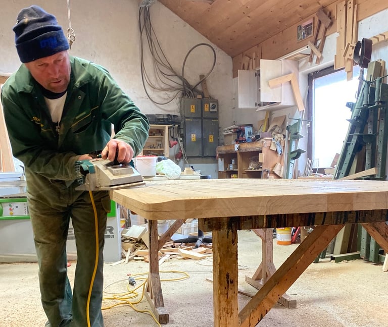 Each piece crafted by our skilled artisans is a testament to the artistry and dedication infused into every detail. Handcrafted with care and precision, our tables embody the essence of timeless design, blending sophistication with the natural beauty of locally sourced Slovenian wood. Each table is a unique creation, meticulously shaped from solid wood, adorned with sophisticated details that speak to our commitment to quality and craftsmanship.
